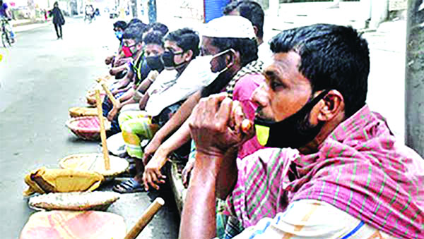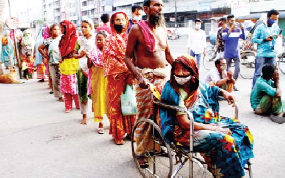 বিভিন্ন সংগঠনের দেয়া খাবার নিতে আসা ছিন্নমূল মানুষগুলো প্রখর রোদে খাবারের অপেক্ষায়। ছবিটি গতকাল মঙ্গলবার কমলাপুর এলাকা থেকে তোলা -মোহাম্মদ আরিফ