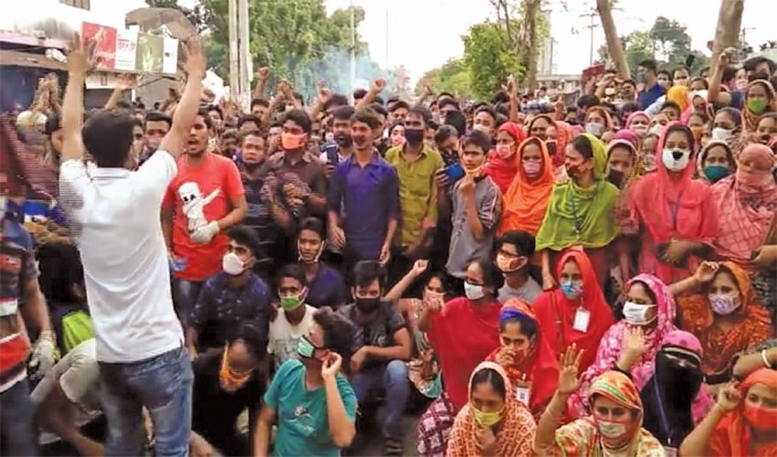 গাজীপুর-নারায়ণগঞ্জ-সাভারে গার্মেন্টস শ্রমিকদের বিক্ষোভ