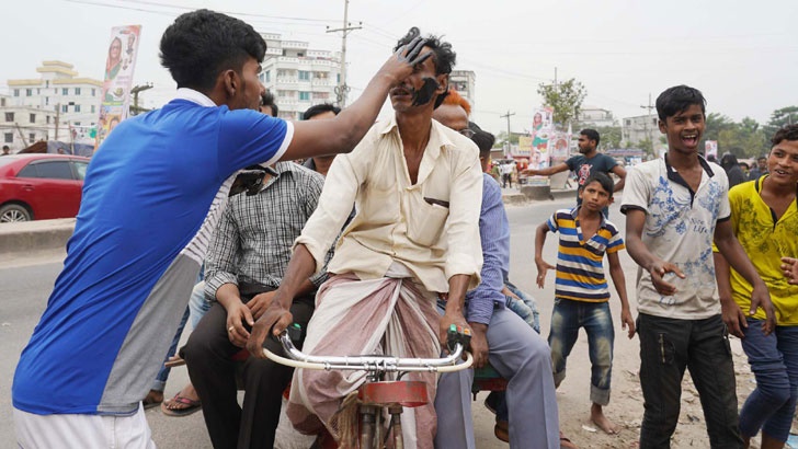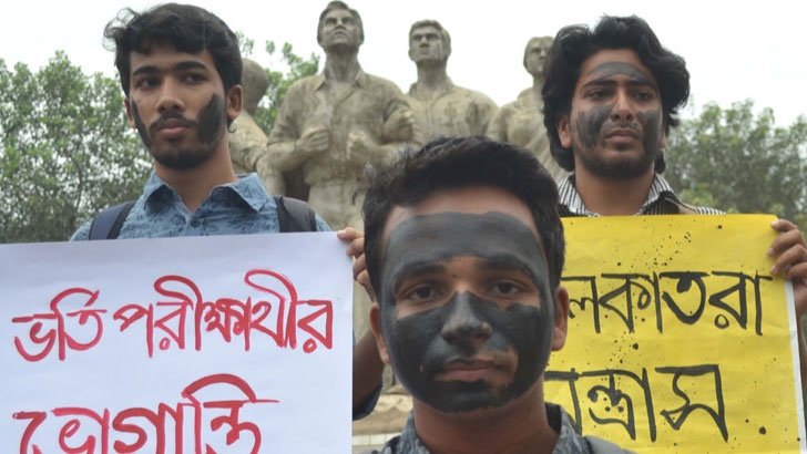 মুখে কালি মেখে মানববন্ধনে ঢাবি শিক্ষার্থীরা