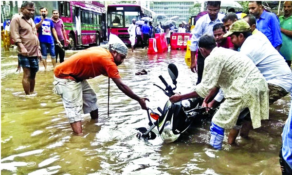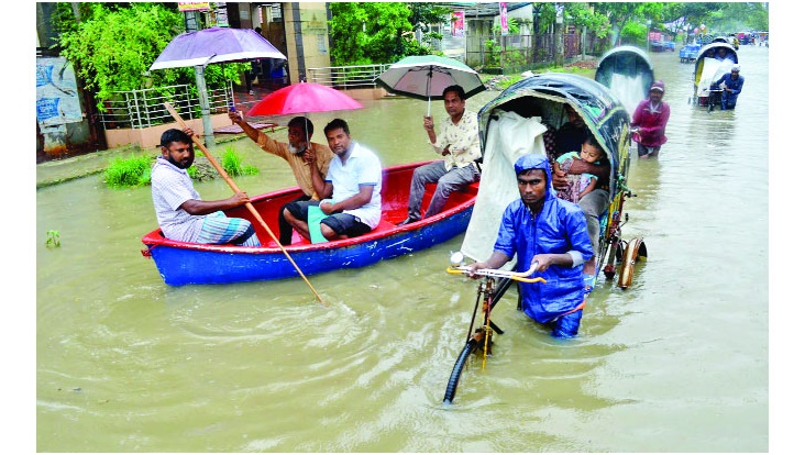 টানা বৃষ্টিতে অর্ধেক এলাকা পানির নিচে