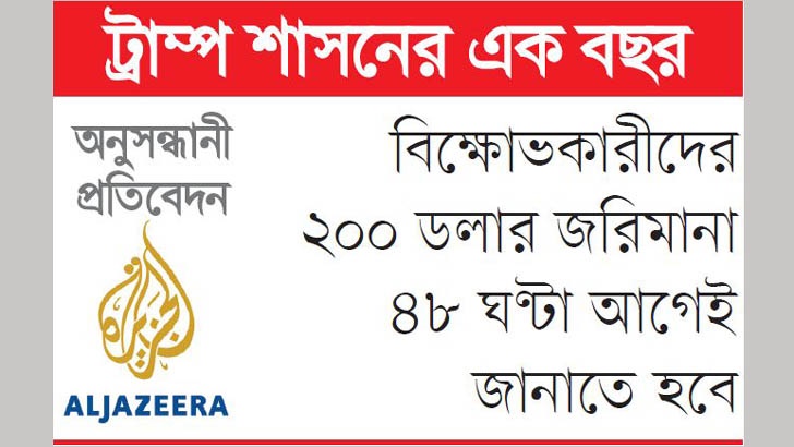ট্রাম্প শাসনের এক বছর : বিক্ষোভকারীদের ২০০ ডলার জরিমানা ৪৮ ঘণ্টা আগেই জানাতে হবে