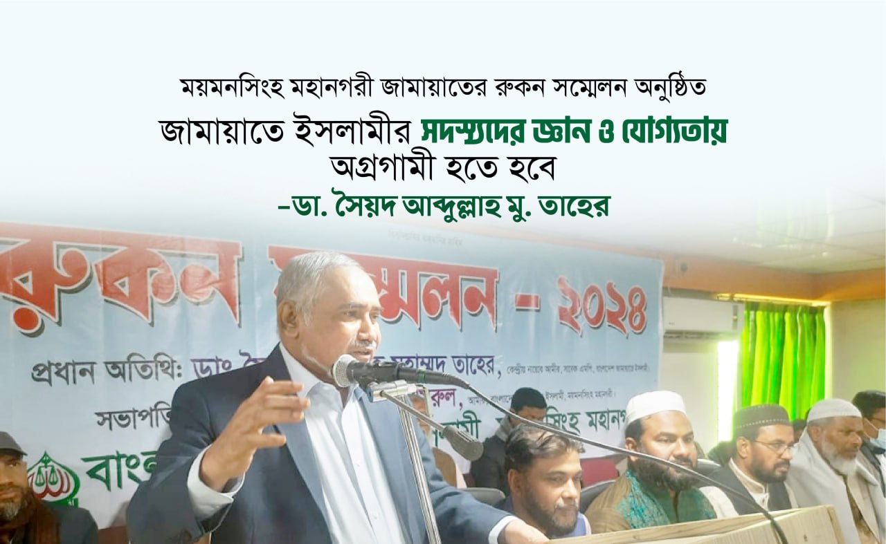 ১০ ফেব্রুয়ারি শনিবার দুপুরে ময়মনসিংহ মহানগরী জামায়াতের রুকন সম্মেলনে প্রধান অতিথির বক্তব্যে তিনি এসব কথা বলেন। মহানগরী জামায়াতের আমীর মাওলানা কামরুল আহসান এমরুলের সভাপতিত্বে ও সেক্রটারি অধ্যাপক শহীদুল্লাহ কায়সারের সঞ্চালনায় সম্মেলনে বিশেষ অতিথি হিসেবে বক্তব্য রাখেন কেন্দ্রীয় নির্বাহী পরিষদ সদস্য ও প্রচার সেক্রটারি এডভোকেট মতিউর রহমান আকন্দ, কেন্দ্রীয় সাংগঠনিক সেক্রেটারি ড. সামিউল হক ফারুকী।