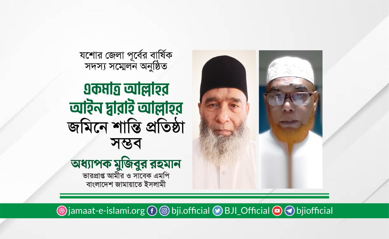 ১০ ফেব্রুয়ারি শনিবার যশোর পূর্ব সাংগঠনিক জেলা জামায়াতের বার্ষিক সদস্য (রুকন) সম্মেলন ভার্চুয়ালি অনুষ্ঠিত হয়। জেলা আমীর মাস্টার মোঃ নূরুন্নবীর সভাপতিত্বে ও জেলা সেক্রেটারি অধ্যক্ষ মাওলানা আবু জাফর সিদ্দিকের সঞ্চালনায় সম্মেলনে প্রধান অতিথি হিসেবে বক্তব্য রাখেন বাংলাদেশ জামায়াতে ইসলামীর ভারপ্রাপ্ত আমীর ও সাবেক এমপি অধ্যাপক মুজিবুর রহমান। বিশেষ মেহমান হিসেবে বক্তব্য রাখেন কেন্দ্রীয় নির্বাহী পরিষদ সদস্য ও যশোর-কুষ্টিয়া অঞ্চল পরিচালক জনাব মোবারক হোসাইন, কেন্দ্রীয় কর্মপরিষদ সদস্য মাওলানা আজিজুর রহমান, অধ্যাপক মুনিরুল ইসলাম প্রমুখ।