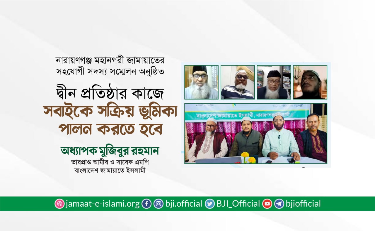 ১০ ফেব্রুয়ারি শনিবার সন্ধ্যায় নারায়ণগঞ্জ মহানগরী জামায়াত কর্তৃক আয়োজিত সহযোগী সদস্য সম্মেলনে প্রধান অতিথির বক্তব্যে তিনি এসব কথা বলেন। কেন্দ্রীয় কর্মপরিষদের সদস্য ও নারায়ণগঞ্জ মহানগরের আমির মাওলানা আব্দুল জব্বারের সভাপতিত্বে এবং মহানগরীর সেক্রেটারি ইঞ্জিনিয়ার মনোয়ার হোসাইন এর সঞ্চালনায় সম্মেলনে বিশেষ অতিথি হিসেবে উপস্থিত ছিলেন কেন্দ্রীয় কর্মপরিষদ সদস্য ঢাকা মহানগরী দক্ষিণের সেক্রেটারি ড. শফিকুল ইসলাম মাসুদ, কেন্দ্রীয় কর্মপরিষদের সদস্য ঢাকা অঞ্চল দক্ষিণ পরিচালক সাইফুল আলম খান মিলন, কেন্দ্রীয় কর্মপরিষদের সদস্য ও নারায়ণগঞ্জ মহানগরীর সাবেক আমির মাওলানা মঈনুদ্দিন আহমদ।