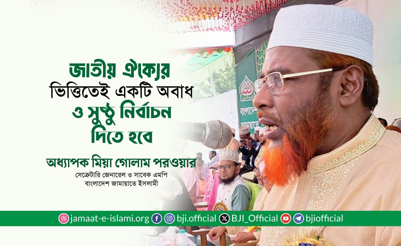 আজ শনিবার ২৩/১১/২০২৪ তারিখ সকাল ৯টা ৩০ মিনিটে বাংলাদেশ জামায়াতে ইসলামী মানিকগঞ্জ জেলা শাখা কর্তৃক আয়োজিত স্থানীয় সরকারি উচ্চ বিদ্যালয়ের মাঠে (বিজয় মেলা মাঠ) জেলা জামায়াতের আমীর হাফেজ মাওলানা মোঃ কামরুল ইসলামের সভাপতিত্বে অনুষ্ঠিত কর্মী সম্মেলন অনুষ্ঠিত হয়। সম্মেলনে প্রধান অতিথির বক্তব্যে অধ্যাপক মিয়া গোলাম পরওয়ার এসব কথা বলেন।