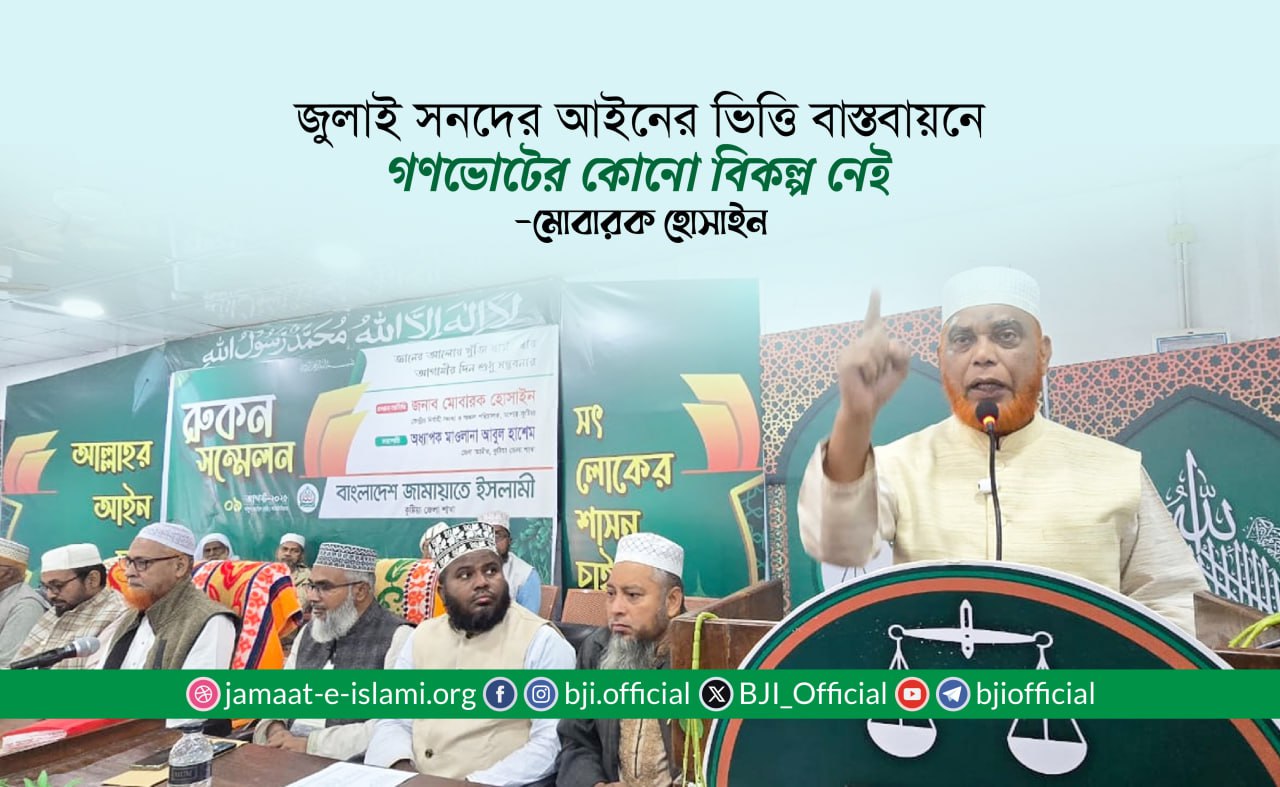 প্রধান অতিথির বক্তব্যে মোবারক হোসাইন বলেন, “নভেম্বরেই অবশ্যই গণভোট দিতে হবে। জুলাই সনদের আইনের ভিত্তি বাস্তবায়নে গণভোটের কোনো বিকল্প নেই। দেশের অধিকাংশ রাজনৈতিক দলই গণভোটের পক্ষে অবস্থান নিয়েছে। যারা আগে এর বিরোধিতা করেছিল, তারাও এখন গণভোটের প্রয়োজনীয়তা স্বীকার করছে।