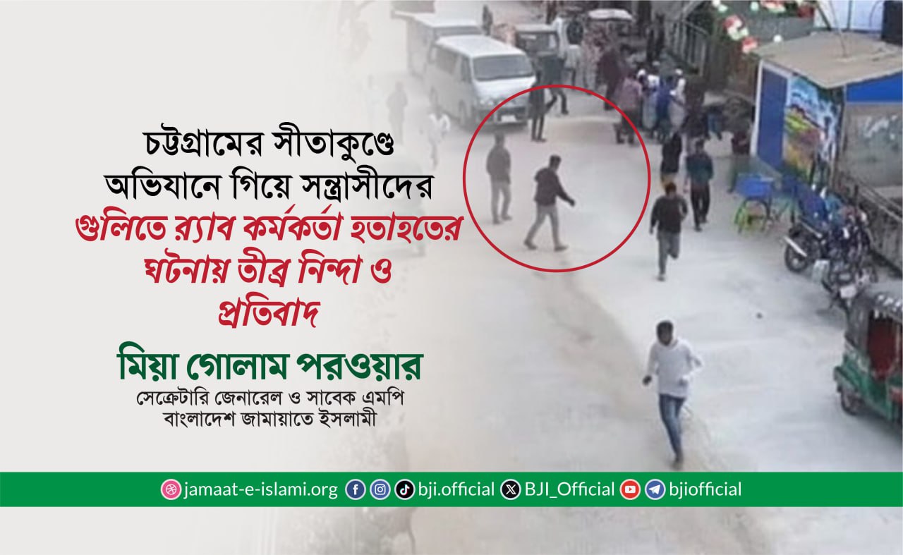 বিবৃতিতে মিয়া গোলাম পরওয়ার বলেন, ‘চট্টগ্রামের সীতাকুণ্ডে অভিযানে গিয়ে সন্ত্রাসীদের গুলিতে একজন র্যাব কর্মকর্তা নিহত ও আরও ৩ জন র্যাব সদস্য আহত হওয়ার ঘটনায় আইনশৃঙ্খলা পরিস্থিতির অবণতি ও সন্ত্রাসীদের কর্মকাণ্ড নিয়ন্ত্রণে প্রশাসনের ভূমিকা নিয়ে দেশবাসী উদ্বিগ্ন। এমতাবস্থায়, আমি সন্ত্রাসীদের নির্মূলে আইনশৃঙ্খলা বাহিনীকে কঠোর পদক্ষেপ নেয়ার আহ্বান জানাচ্ছি।’