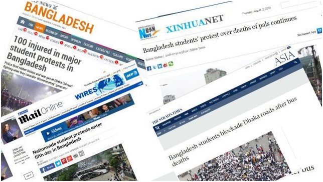 ঢাকার রাস্তায় শিক্ষার্থীদের আন্দোলনের বিষয়টি আন্তর্জাতিক বিভিন্ন সংবাদমাধ্যমে উঠে এসেছে। এসব খবরে শিক্ষার্থীদের প্রতিবাদ-বিক্ষোভের কথা উঠে এসেছে। জানানো হয়েছে, শিক্ষার্থীদের আন্দোলনে অচল হয়ে পড়েছে রাজধানী ঢাকা।
