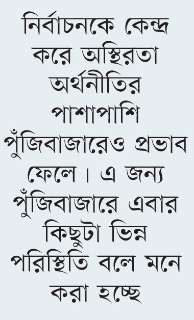 সংশ্লিষ্টরা বলছেন, নির্বাচনকে ঘিরে পুঁজিবাজারে শেয়ার লেনদেন ও বিক্রি কমেছে। কিনছেন কমই কিন্তু বিক্রি করছেন বেশি। মূলত, দেশের রাজনৈতিক পরিস্থিতিকে কেন্দ্র করেই বিক্রি করছেন বেশি। নির্বাচনকে কেন্দ্র করে অস্থিরতা অর্থনীতিতে প্রভাবের পাশাপাশি পুঁজিবাজারেও প্রভাব ফেলে। এই জন্য পুঁজিবাজারে এবার কিছুটা ভিন্ন পরিস্থিতি বলে মনে করছেন সংশ্লিষ্টরা।